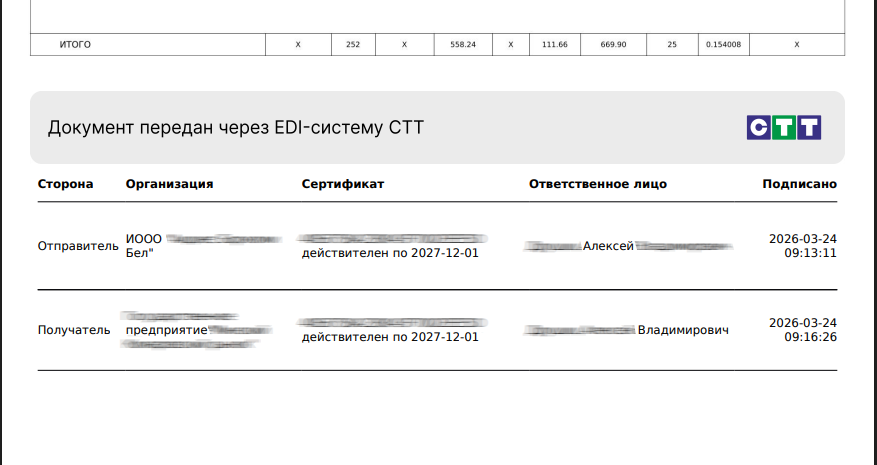 12 апреля в 12:00 будет осуществляться обновление EDI-системы СТТ.