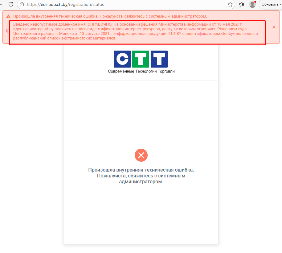 Это связано с тем, что 18 мая 2021 года Министерство информации внесло домен tut.by в список ограниченных интернет-ресурсов. Позднее, 13 августа 2021 года, суд Центрального района Минска признал материалы TUT.BY экстремистскими и включил их в соответствующий республиканский список. По этим причинам регистрация с использованием адресов на данном домене невозможна.