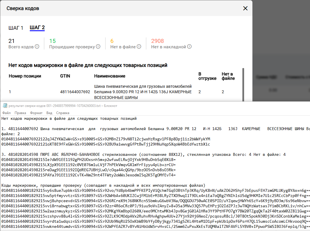 2. Доработка отчета по сверке кодов маркировки в WEB-версии EDI-системы СТТ;