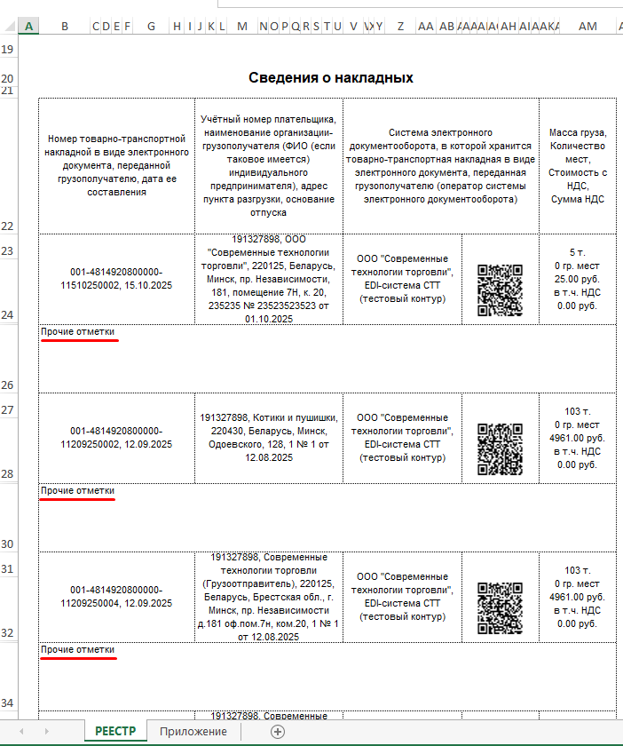 В обновлении от 9 ноября в Реестре эТТН будет добавлено поле «Прочие отметки», если в реестре более чем одна накладная.